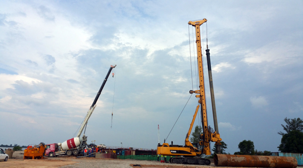 文萊PMB跨海大橋首根試樁鉆孔直徑1.5m,鉆孔深度68.6m,灌注混凝土120方。試樁內(nèi)裝有“荷載箱”兩組,鋼筋應力計52組。通過技術(shù)攻關(guān),首根試樁的鉆孔垂直度、泥漿參數(shù)、沉渣厚度等指標均滿足歐標要求,順利通過總包、監(jiān)理驗收。尤其是混凝土灌注施工,有了鉆孔質(zhì)量的保證,混凝土灌注導管自由的在布設(shè)有兩組關(guān)卡的“荷載箱”內(nèi)安放、提拔,獲得了總包方和監(jiān)理方稱贊,監(jiān)理工程師向我們豎起了大拇指。我們以一流的管理、先進的設(shè)備、精湛的技術(shù),進一步擦亮了“河北建勘”品牌。