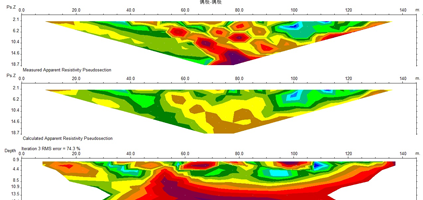 項目除了采用地質調查測繪、鉆探、井探、常規(guī)巖土試驗和巖石剪切試驗外,還采用了瑞雷波勘探和高密度映像物探手段,根據物探結果并結合鉆探資料客觀的分析了覆蓋層厚度、滑體的空間分布特征及基巖表面破碎程度,得到全面真實的滑體空間分布特征。