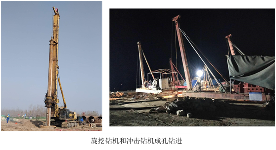 本工程主要包括從黃河左岸大堤位置起,大橋主橋17#、18#和19#墩三個墩的樁基工程,主要工作內(nèi)容為:成孔、水下混凝土灌注和配合樁基檢測。自2018年11月22日開工,2019年5月19日全面竣工,共計179天,投入旋挖鉆機(jī)TR360D 1臺,沖擊鉆機(jī)6臺,空壓機(jī)1臺,泥漿處理器1臺。施工完成后,經(jīng)相關(guān)單位檢測和驗:本工程鉆孔成孔深度、成孔直徑符合設(shè)計要求;入巖深度和巖石強(qiáng)度符合設(shè)計要求;樁基超聲波檢測合格率100%,優(yōu)良率100%。