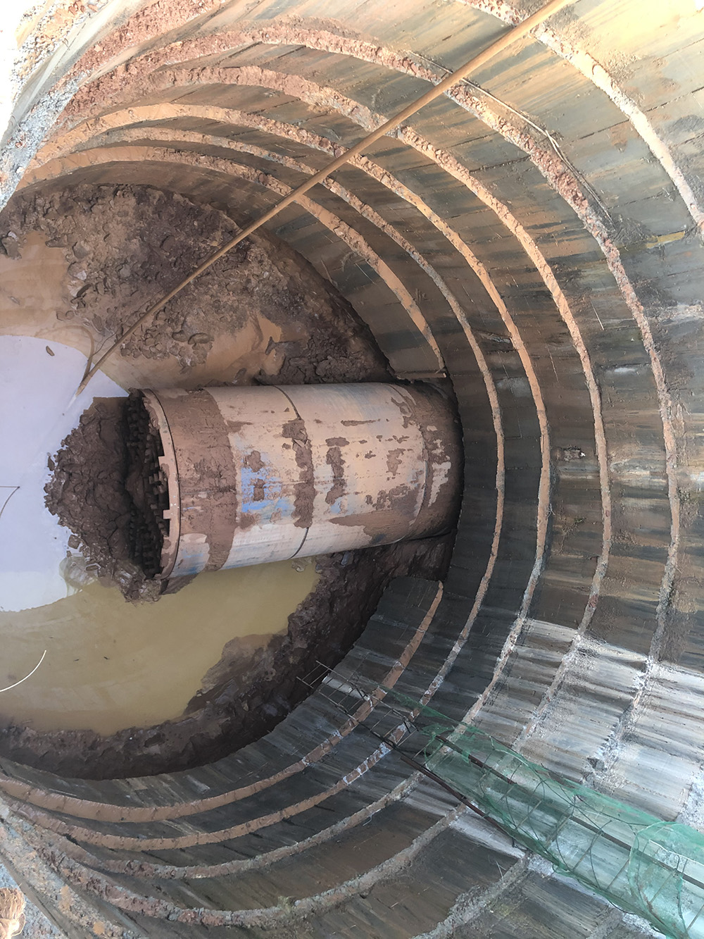 當(dāng)機(jī)頭全部進(jìn)入后封閉后,開始由機(jī)頭向管外壁注觸變泥漿,使管外壁形成泥漿套,起到減阻、潤滑作用。其中的膠質(zhì)能將套管外圍的沙土膠化粘結(jié),從而避免套管外側(cè)的沙土擾動與塌陷。