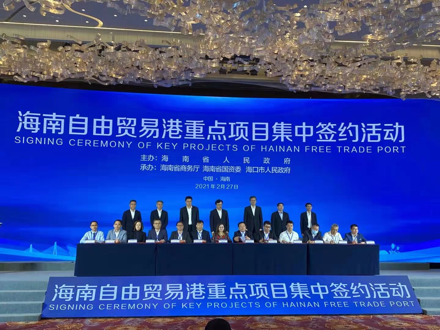 2021年2月27日下午,海南自由貿(mào)易港2021年(第一批)重點(diǎn)項(xiàng)目集中簽約儀式在??谑泻D嫌e館舉行。受公司領(lǐng)導(dǎo)委托,張樹臣同志代表我公司出席簽約儀式,并順利與??谑薪瓥|新區(qū)成功簽約。