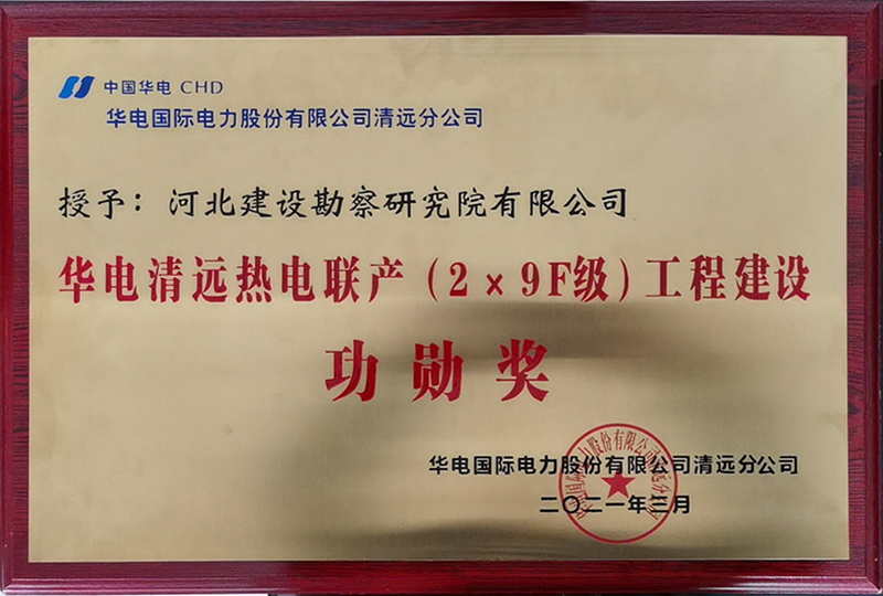 我公司榮獲華電清遠熱電聯(lián)產(chǎn)(2×9F級)工程建設功勛獎