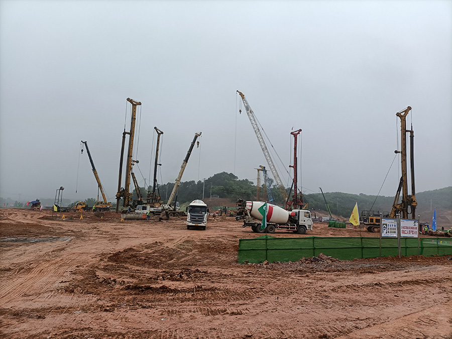 本工程樁基實際開工時間為2021年03月11日,竣工時間為2021年7月15日,共完成混凝土灌注量約12800m3,直徑800mm、樁長約13-26m鉆孔灌注樁183根,直徑1000mm、樁長約13~28.6m鉆孔灌注樁529根,直徑1400mm、樁長約18~25.5m鉆孔灌注樁54根,總計766根鉆孔灌注樁,強夯64917平米。經(jīng)抽樣檢驗297根樁基均達到合格等級,滿足驗收要求。單樁豎向抗壓試驗選取8根,鉆芯法取樣8根樁,淺層平板載荷試驗選取15點,承載力及強度均滿足設(shè)計要求。