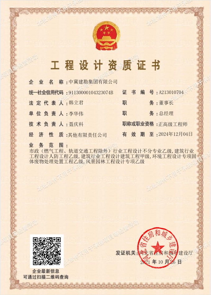 公司于2021年10月26日取得了環(huán)境工程設(shè)計專項(固體廢棄物處理處置工程)乙級資質(zhì)證書,可承擔中型以下規(guī)模環(huán)境工程(含建構(gòu)筑物和非標準設(shè)備等)專項設(shè)計。