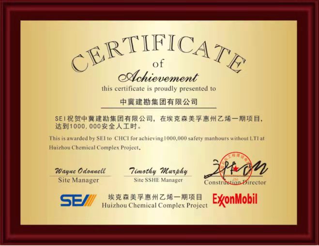 廣東惠州??松梨诨葜菀蚁┮黄陧?xiàng)目樁基工程,榮獲??松梨冢ɑ葜荩┗び邢薰炯爸袊こ探ㄔO(shè)有限公司惠州項(xiàng)目部“達(dá)到1000000安全人工時(shí)”優(yōu)秀團(tuán)隊(duì)獎,耿蕩榮獲“安全先進(jìn)個(gè)人獎”。