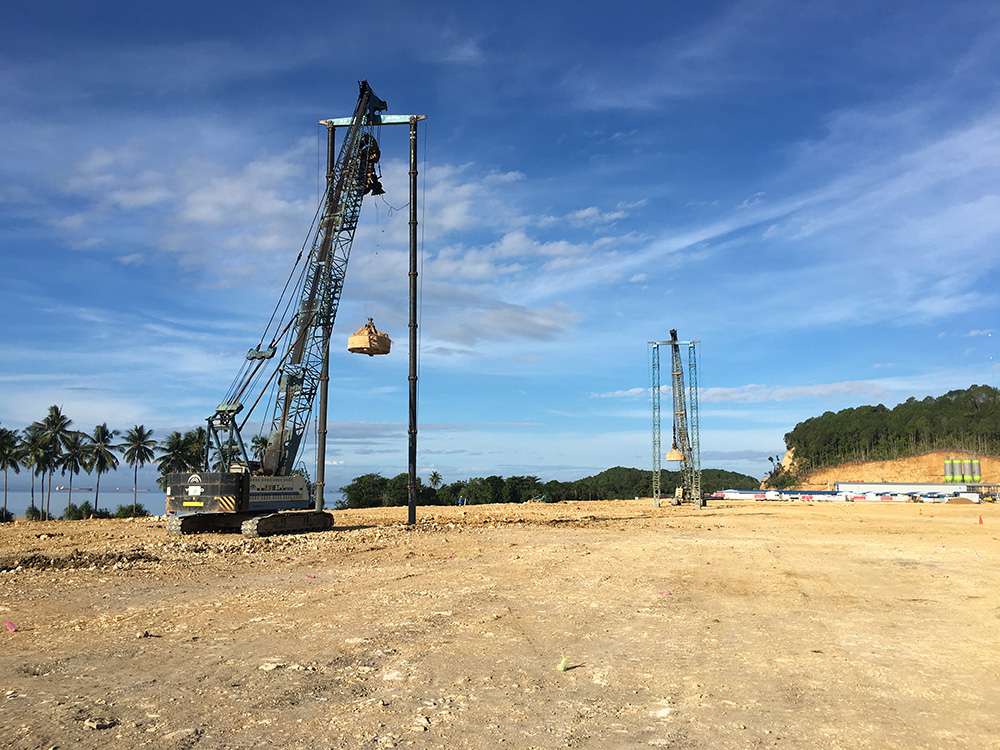 本項(xiàng)目位于印度尼西亞東加里曼丹省,由PT.KOBEXINDO CEMENT投資建設(shè),我公司負(fù)責(zé)本項(xiàng)目強(qiáng)夯施工。施工地層由人工填土層、粘土、粉質(zhì)粘土、細(xì)砂、石灰?guī)r組成。