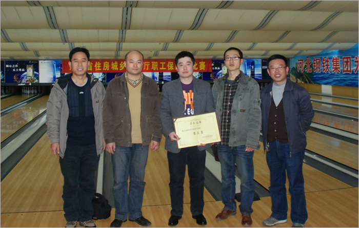 11月10日,河北省住房和城鄉(xiāng)建設(shè)廳職工保齡球比賽在太行賓館保齡球館火熱開(kāi)賽。我公司派出陳寧、王永周、胡建林、王利鋒、唱曉剛組成的河北建勘保齡球隊(duì),角逐男子團(tuán)體和個(gè)人排名賽。在熱火朝天的比賽中,我參賽選手士氣高漲,在比賽中學(xué)習(xí)揣摩,在比賽中實(shí)踐,最終在這項(xiàng)完全陌生的運(yùn)動(dòng)項(xiàng)目中獲得總分1200分,取得了團(tuán)體第三名的好成績(jī)。