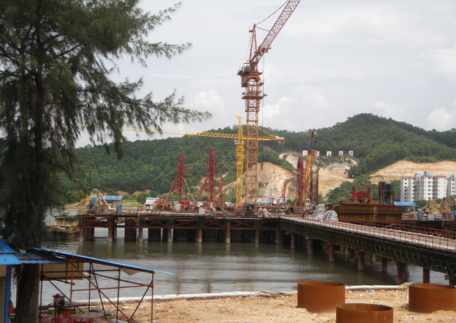 共完成直徑φ2.0m,樁長(zhǎng)65~93.5m,111根鉆孔灌注樁,混凝土灌注量 30946.1m3。