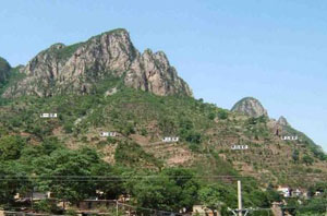 磁縣陶泉鄉(xiāng)南王莊位于冀西南群山之中。近年來,北側(cè)“道士帽”山峰下曾發(fā)生過巖石崩落,造成一處民宅被砸,威脅約20余戶居民。隨著時(shí)間的推移,在各種地質(zhì)作用下,尤其是降水、凍融的影響,存在著繼續(xù)發(fā)生崩塌的隱患。為了村民的生命、財(cái)產(chǎn)安全,達(dá)到防災(zāi)減災(zāi)的目的,受磁縣國土資源局的委托,我公司進(jìn)行了崩塌治理勘察工作。