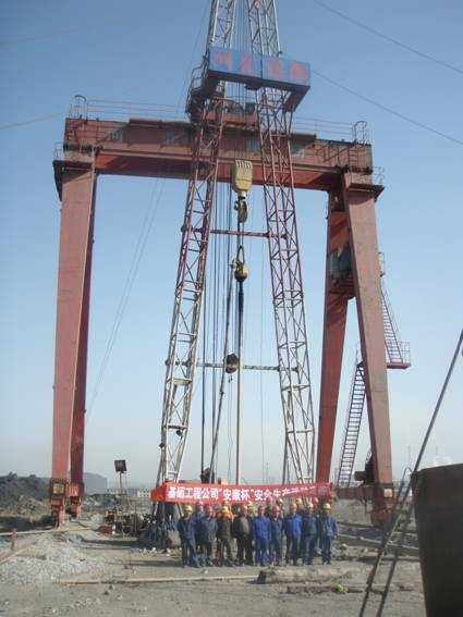 本工程成孔垂直度要求高,要求控制在1.0‰以?xún)?nèi),投料管重量大,總重達(dá)到356t,施工難度大;經(jīng)過(guò)精心組織,質(zhì)量合格,一次交付。